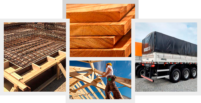 Trabalhamos com Eucalipto, Pinos e madeiras nobres de lei como Ipê, Garapeira, Itaúba, Cedrinho, Louro Freijo. Contamos com forro e parede de madeira, Portas e janelas - aberturas em madeira. Na parte da cobertura Aluzinco, Brasilit e telhas Onduline, Pregos e escoras também fazem parte.